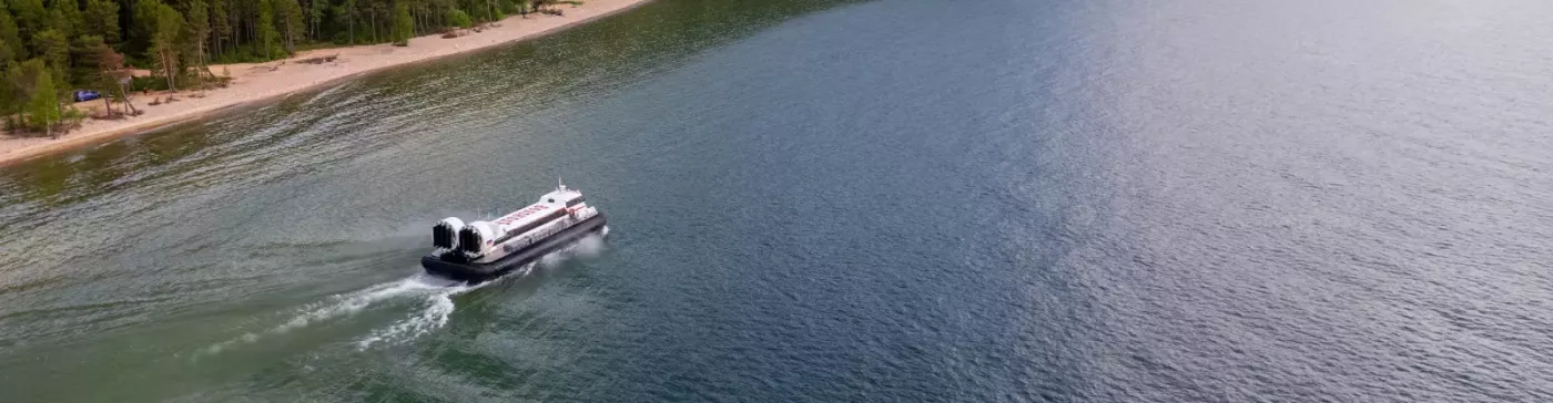 Высота воздушной подушки судна составляет 0,9 м, что позволяет ему двигаться над различными препятствиями, будь то перемещение по суше, льду или воде, при этом пассажиры могут спокойно отдыхать в комфортабельных креслах с откидной спинкой, пока не прибудут в место назначения.